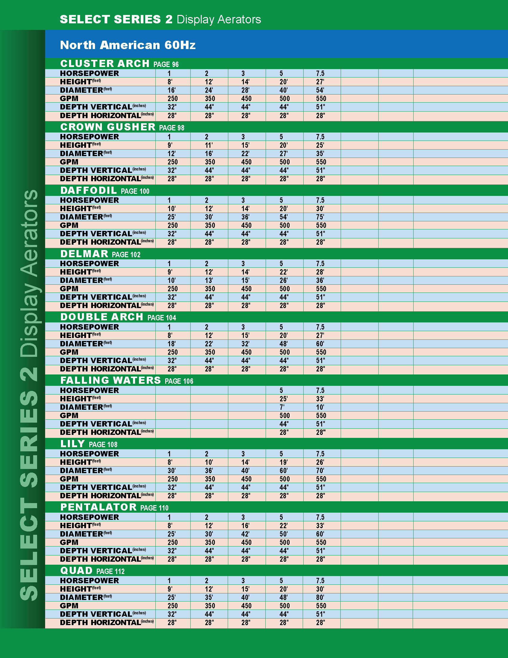 The Select Series 2 (SS2) brilliantly combines beauty and functionality with increased efficiency. These high performance aerators are re-engineered to minimize stress on the motor and increase performance. Composed of high strength composite materials, these innovative display aerators offer the highest spray patterns of their type in the industry.