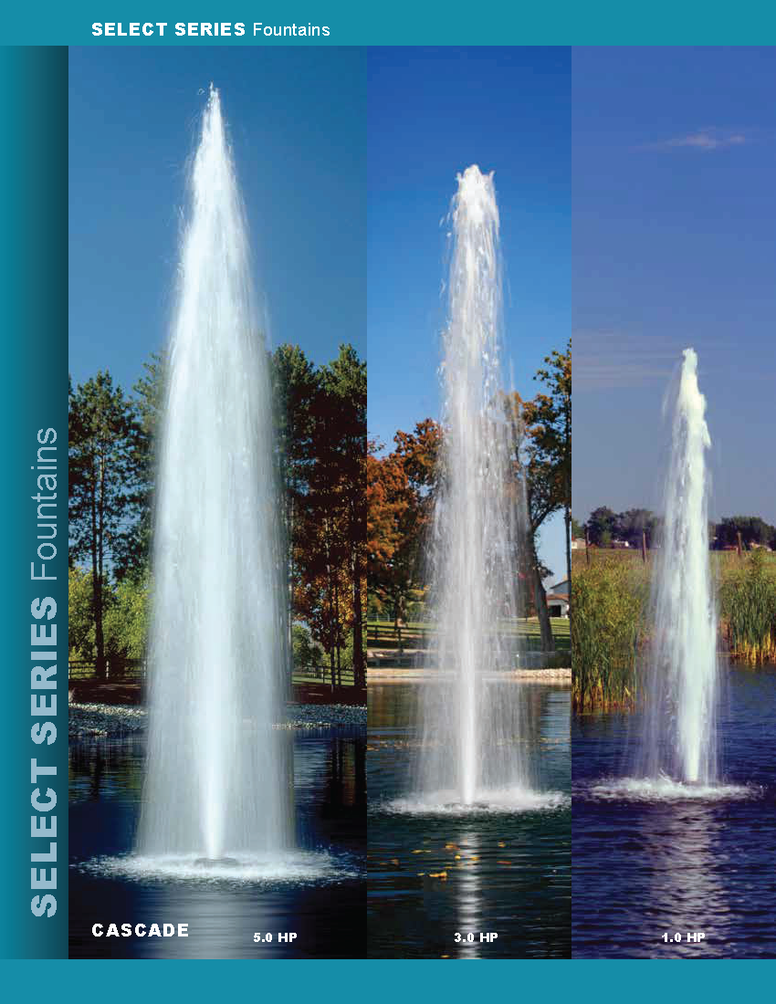 The Select Series Fountains are the cornerstone of the Aqua Control floating product offerings. This product line is built using centrifugal pumps (uses an impeller). These pumps are designed to produce high pressure, thus producing tall and wide spray patterns.