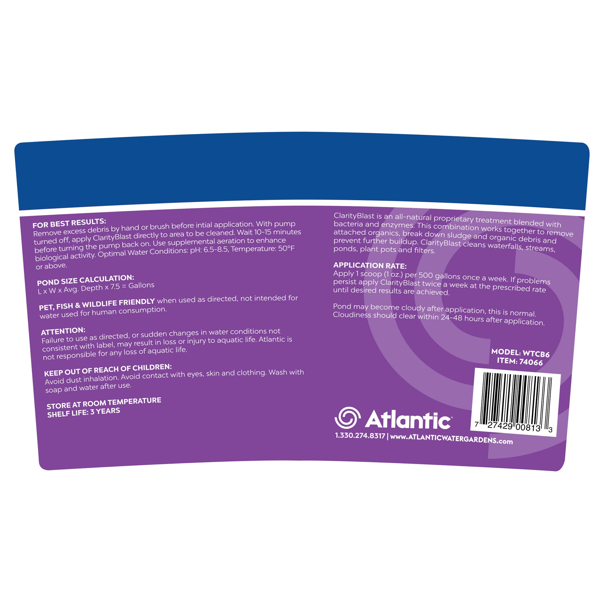 Atlantic's ClarityBlast is an all-natural proprietary treatment with bacteria and enzymes