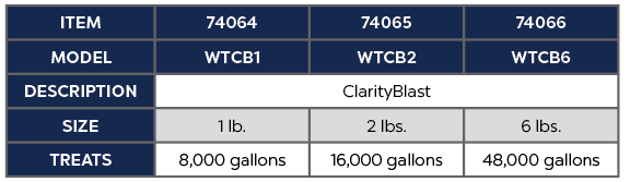 The WTCB1 is 1lb. and treats 8,000 gallons.