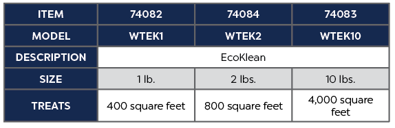 The WTEK1 is 1lbs. and treats 400 square feet.
