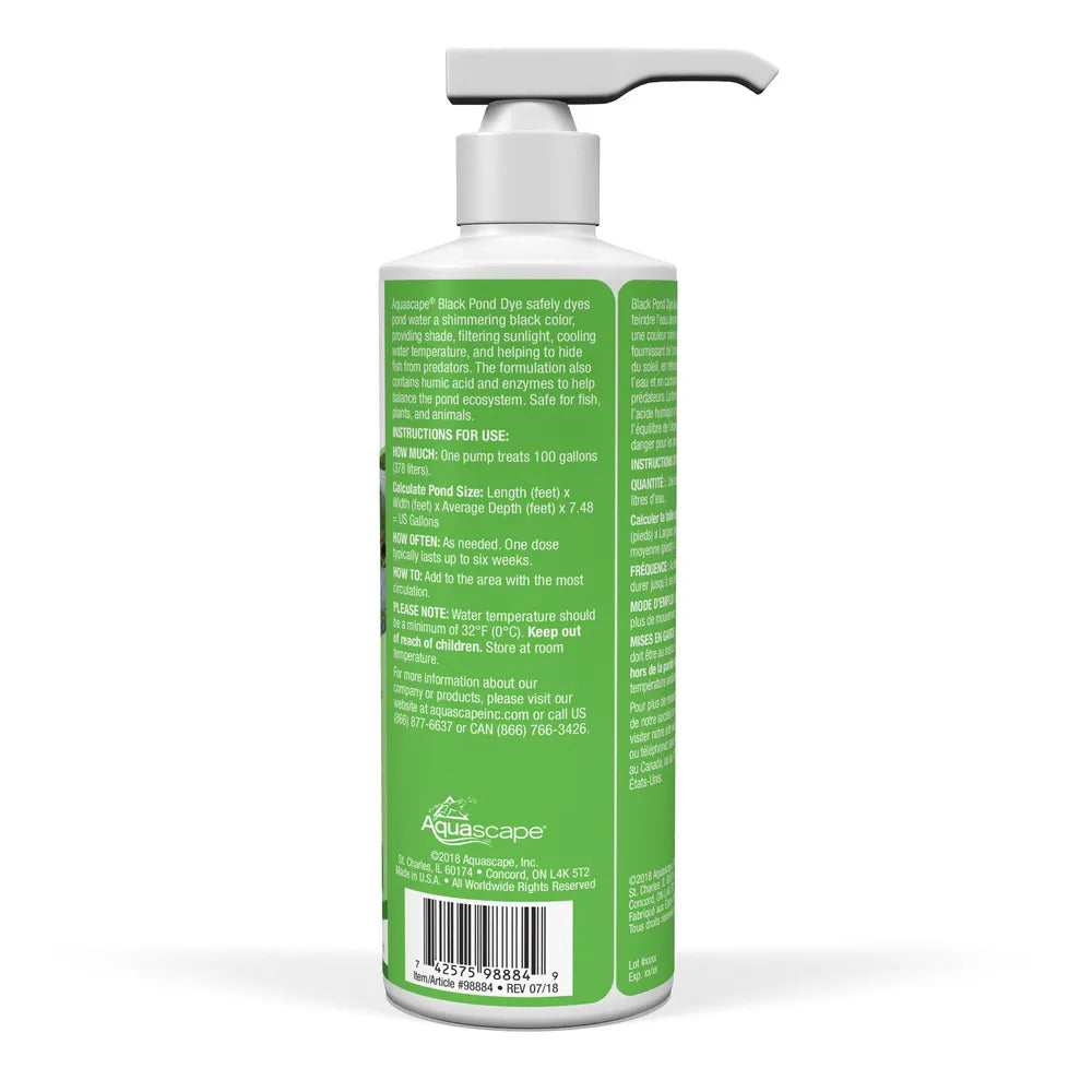 Aquascape Black Pond Dye offers an elegant solution to enhance your pond's aesthetic and ecological qualities. This dye delicately tints the pond water to a rich and natural tea color, imparting a captivating shimmer across the water's surface.