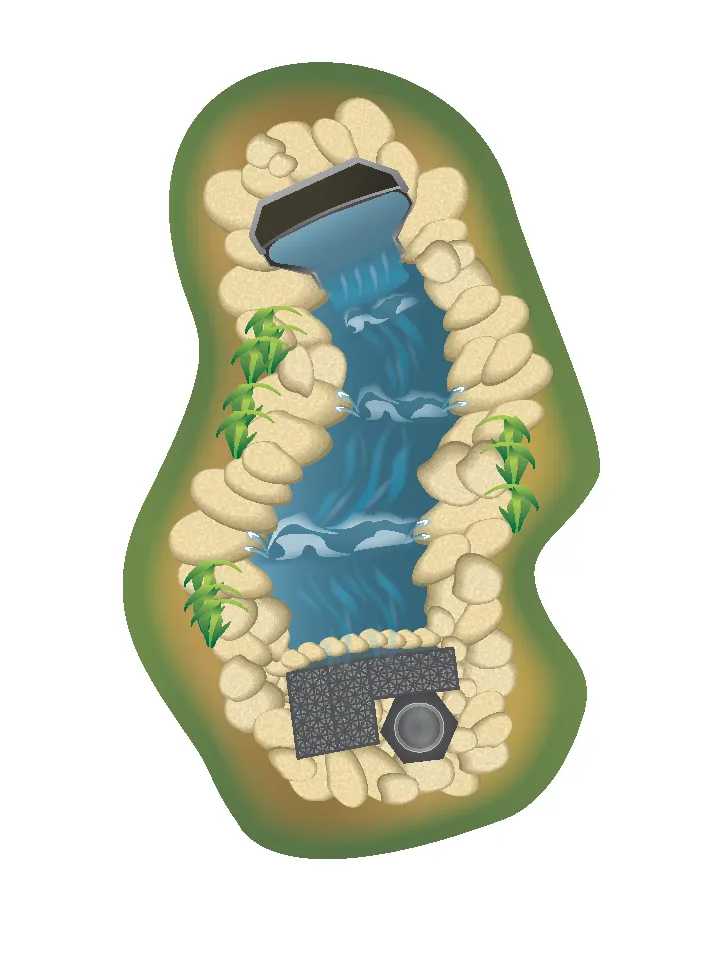 Cascading Falls Kits provide everything you need to create that professional pond-less installation. With five sizes available we’re sure to have a package that will fit appropriately within your landscape design. Perfect for homeowners who want the sights and sounds of a waterfall without the maintenance of a pond. This kit makes a stream approximately 16' long, 4'-5' wide.