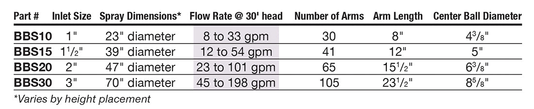 - 70" Spray Diameter: 3" Inlet