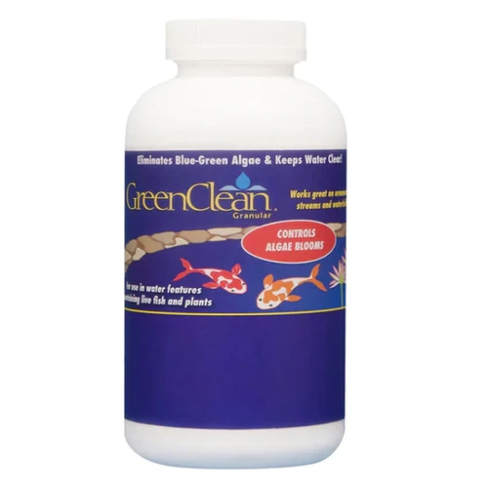 The Green Clean Granular Algaecide is designed to swiftly eliminate algae in ponds and water features while being fish and plant-friendly: