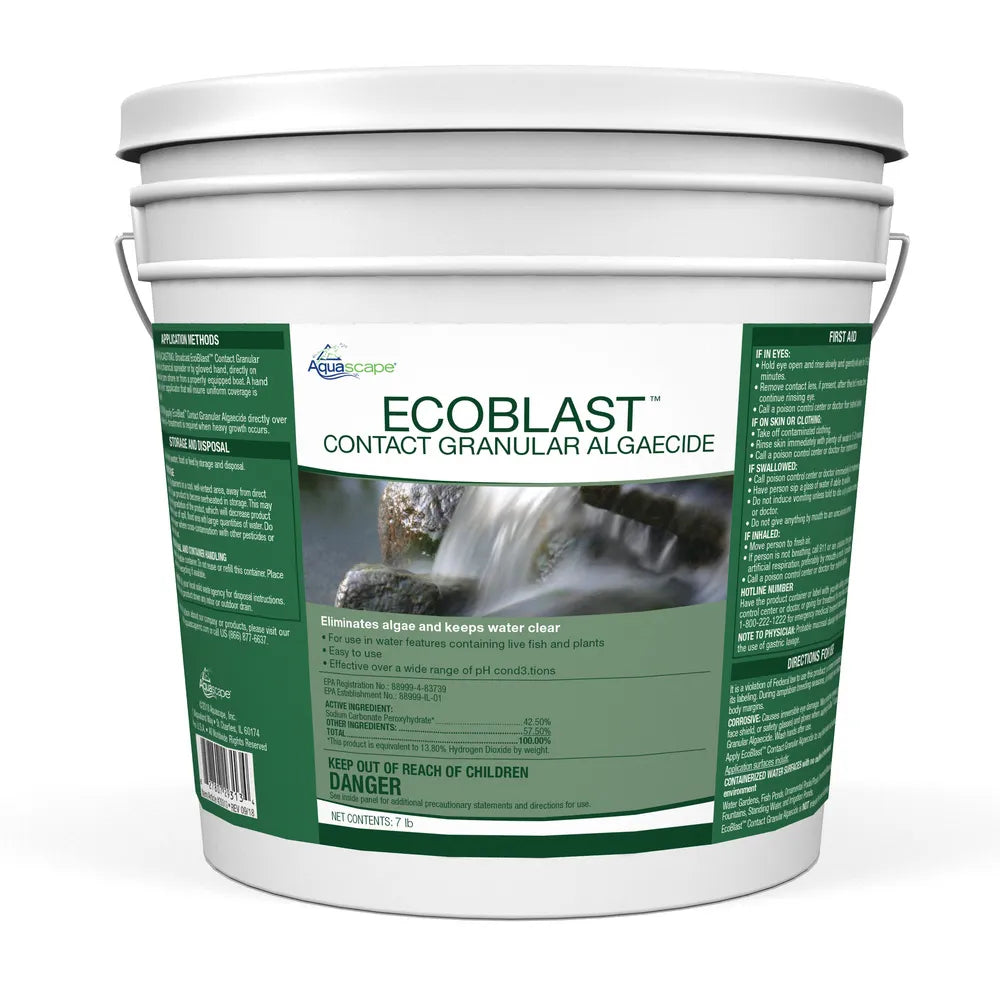 Aquascape EcoBlast™ Contact Granular Algaecide offers a straightforward and effective solution for eliminating unsightly algae and debris from various water features, including waterfalls, fountains, streams, and rocks. This granular algaecide is designed to provide immediate results upon contact, making the process of algae removal convenient and efficient.