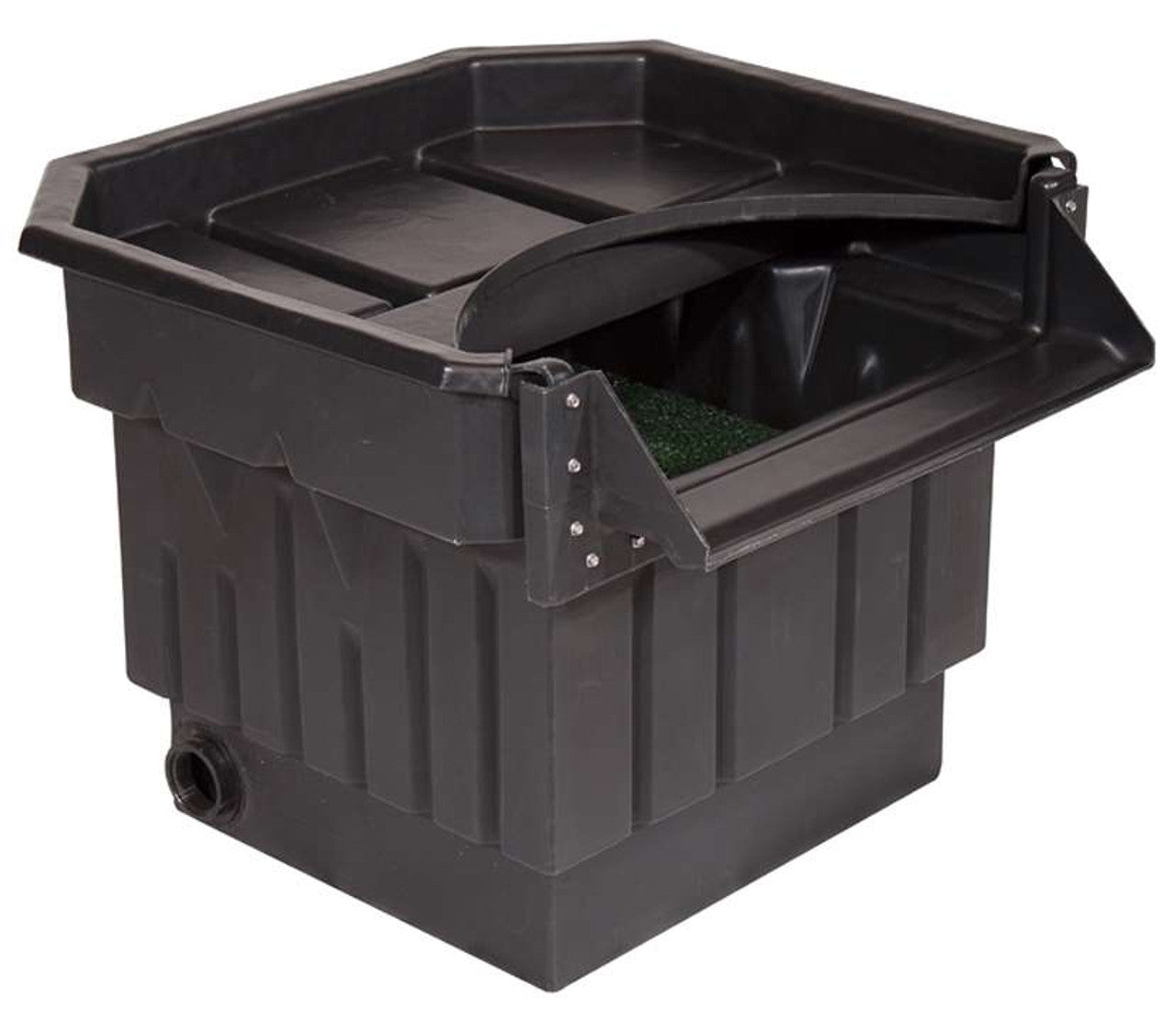The octagonal design provides maximum strength, and a much easier shape to camouflage than circular or rectangle designs. With 2 bulkhead openings, pipes can be installed from either side. The second opening can be used as a back flush to perform water changes or connect multiple pumps or plumbing lines. The two included Matala mats have two times the biological benefit and will last up to four times longer than traditional mats. These boxes come with self-tapping stainless steel screws for easy installation and corrosion resistance. Lastly, the waterfall snout is reversible. Install in the usual way for basic installation or reverse the snout for a more advanced waterfall appearance.