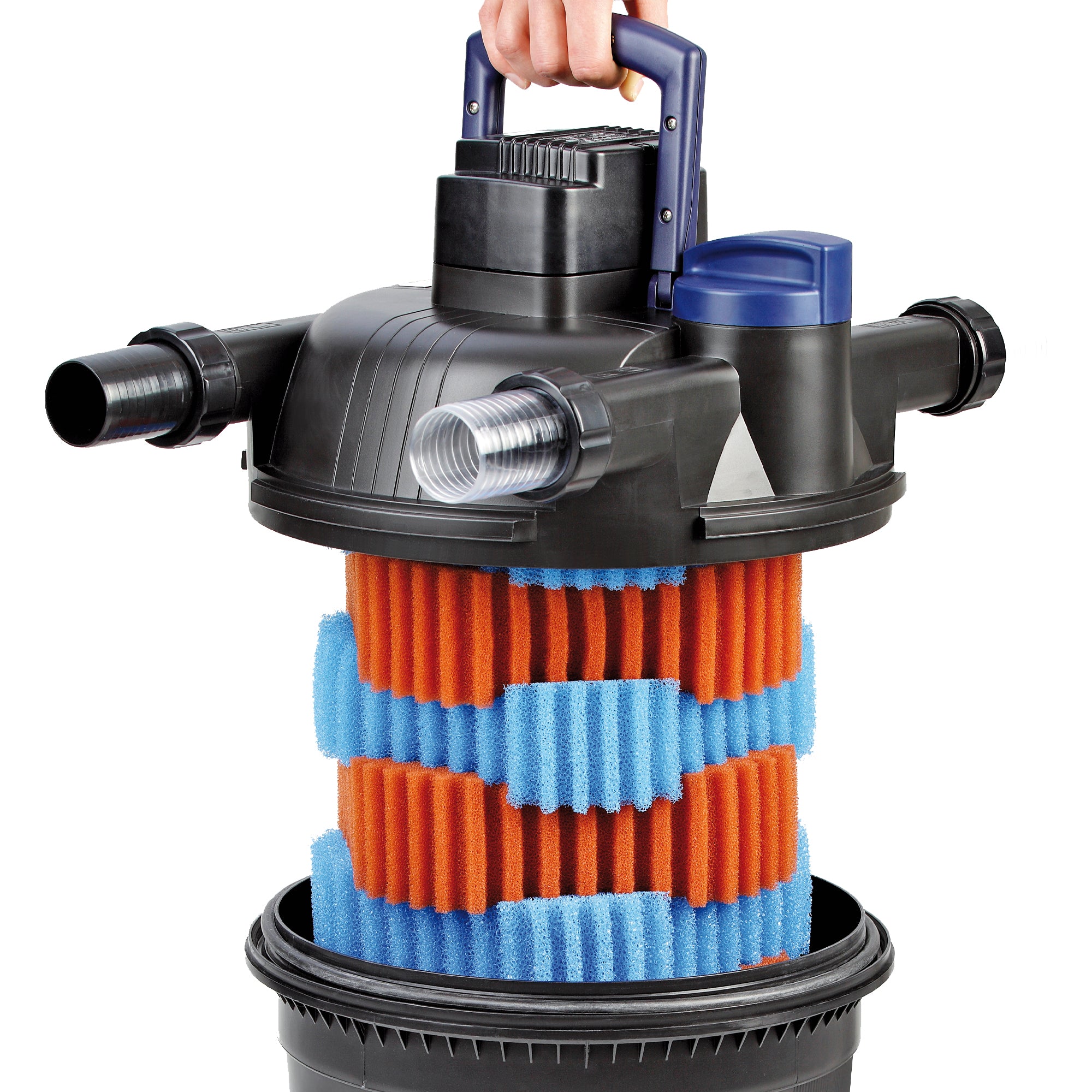 Compact filter size with high filtration capacity is perfect for Fountain, Formal Spillway, Pond-free and Water Garden applications