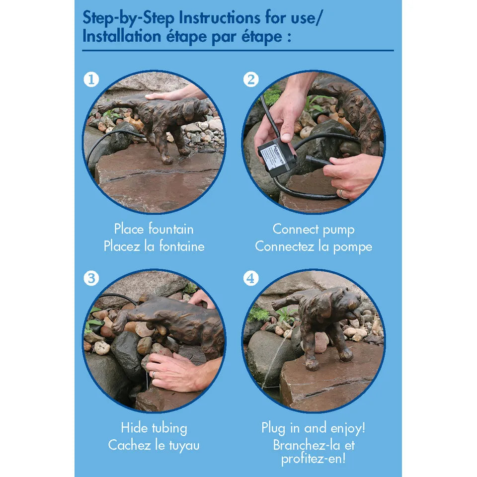 Designed with attention to detail, the spitter replicates the texture, form, and appearance of real brass, all at a fraction of the cost. The fountain measures 18.5" in length and stands at 10.5" in height, making it a noticeable and appealing addition to your aquatic landscape. Enhance the visual and auditory appeal of your pond or water feature with the Aquascape Naughty Dog Spitter, an artful and practical addition to your outdoor environment.