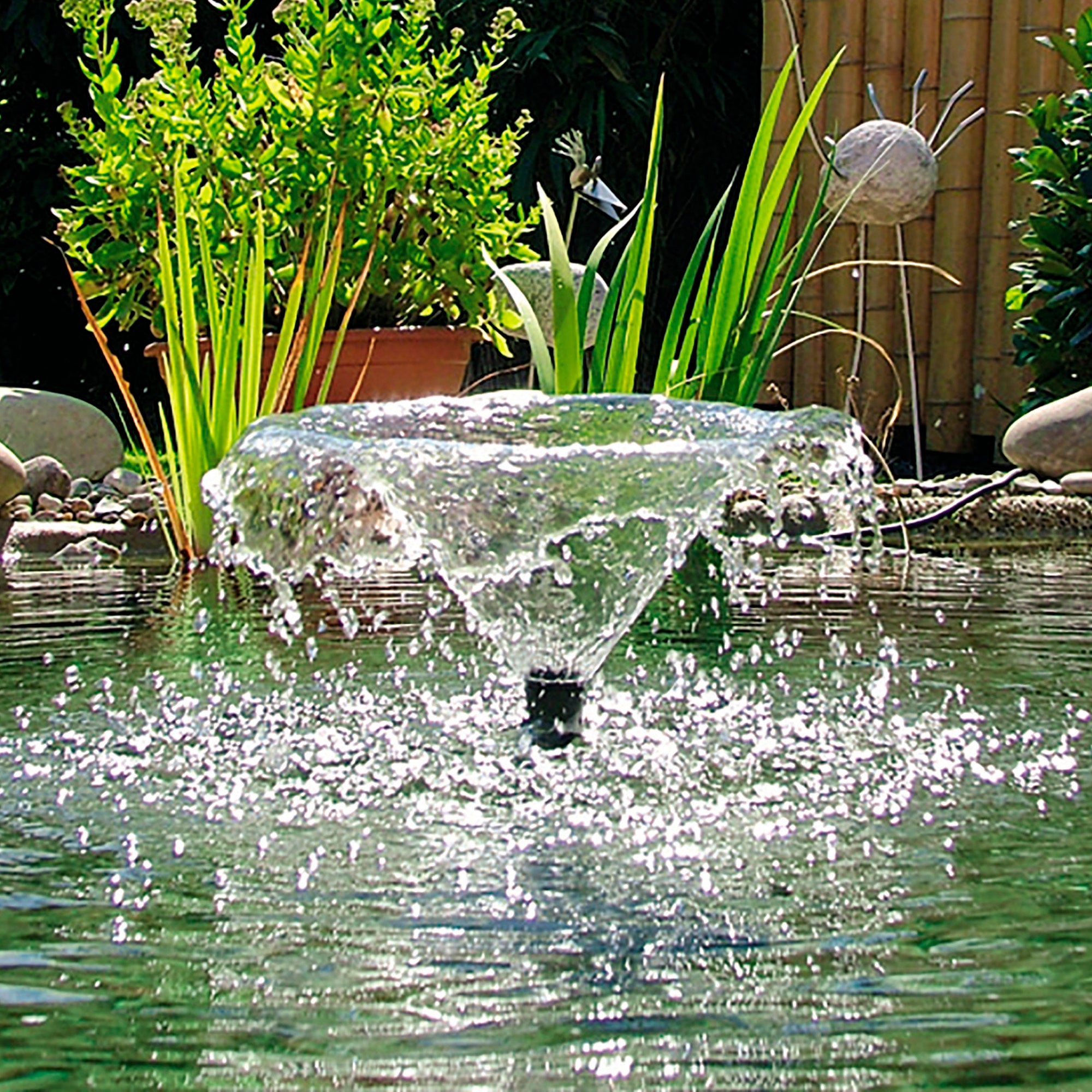 Aerates and decorates ponds, fountains, and containers