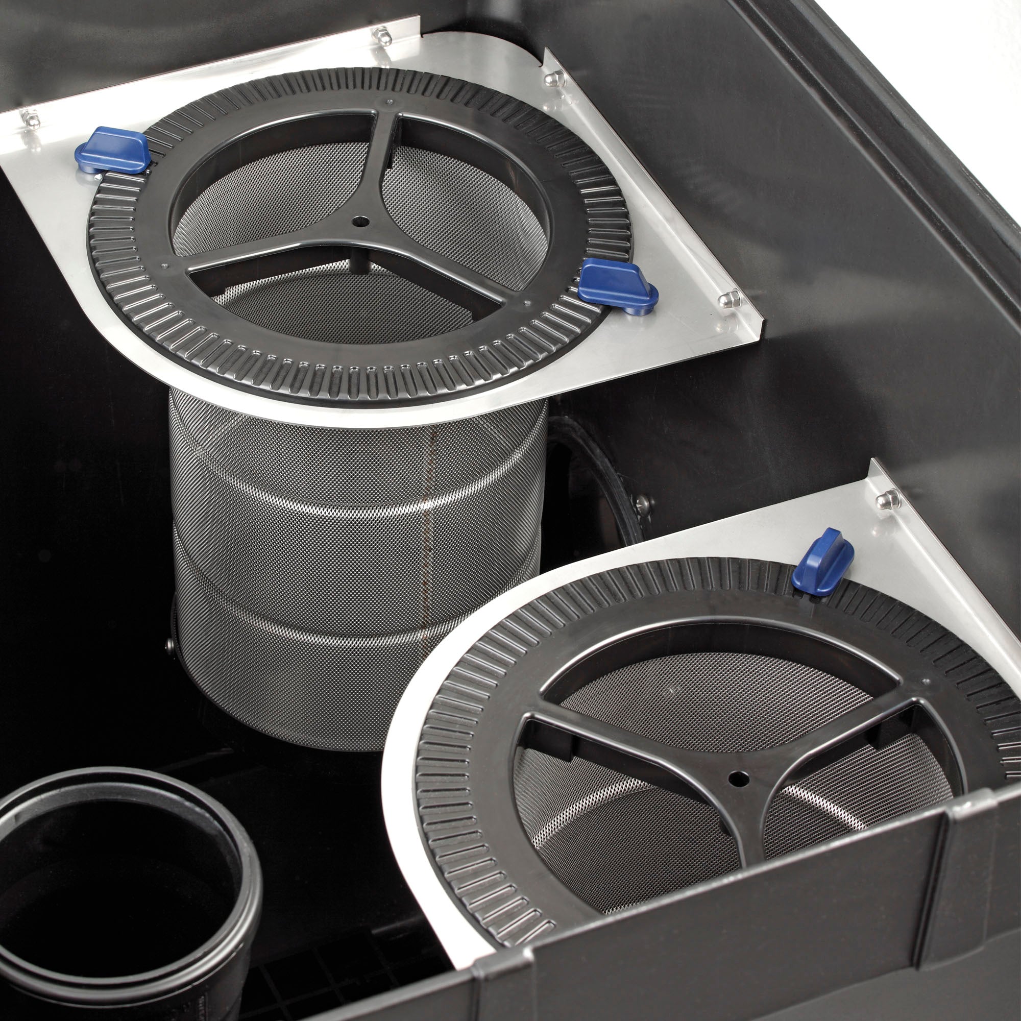 The two baskets in the flow area can be filled with up to 8 liters/488 cubic inches of Hel-X filter media for additional filtration capacity (sold separately)