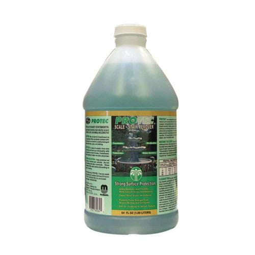 The Protec Scale and Stain Preventative and Remover prevents and removes calcium buildup and metal stains from your pool. This water treatment solution also helps maintain the beauty of statuary surfaces without scrubbing.