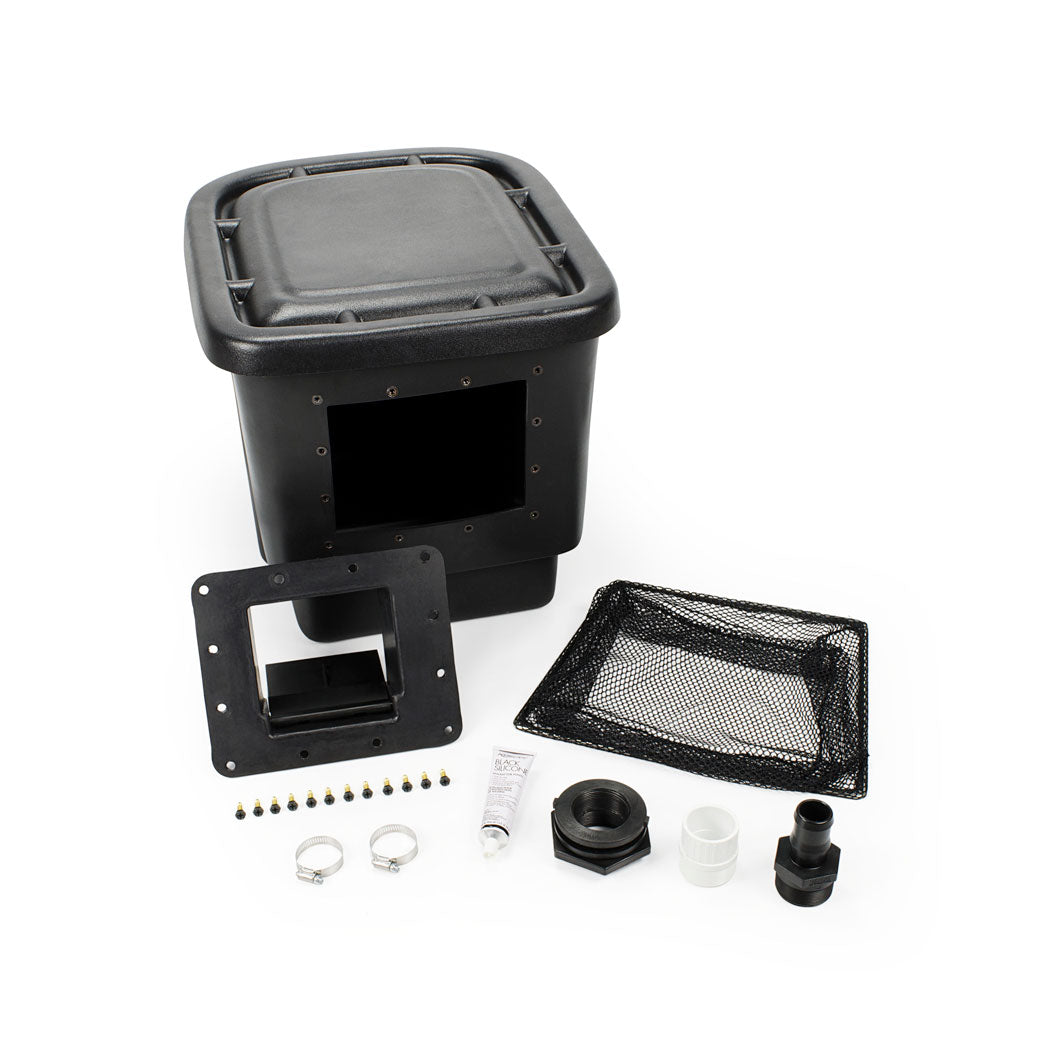 The Aquascape Signature Series 200 Pond Skimmer provides efficient mechanical filtration by removing unwanted debris from the surface of the pond, significantly reducing maintenance and improving water quality. The filter also provides a protected location for the pump, extending pump life. The Signature Series 200 Pond Skimmer is easy to install and ideal for ponds up to 200 square feet. The filter includes a leaf and debris net that makes debris removal quick and simple. The extremely durable, UV-protected, high-density polyethylene construction and the rounded shape maximize the strength of the filter, enabling installation in freeze-thaw conditions. The Signature Series 200 Pond Skimmer can handle pump flow rates up to 3,000 gallons per hour and is equipped with a 6” wide weir for ideal water flow. An included lid helps to protect the internal components of the filter. Corrosion-resistant, non-cross-threading hardware stands up to the elements. An optional filter brush cartridge (#99772) can be added to provide additional filtration and an optional overflow kit is also available (#88036). The Signature Series 200 Pond Skimmer is backed by a limited lifetime warranty, ensuring year after year of trouble-free use.