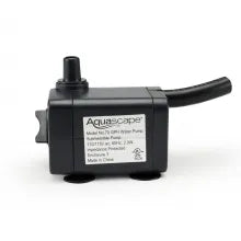 The Aquascape Water Pump is ideal for use with smaller decorative fountains, ornamental spitters, and other indoor and outdoor water features. The water pump is easy to install and maintain and the durable pre-filter cage prevents clogging and reduces pump maintenance, providing years of trouble-free operation. The included flow-control allows you to customize the water flow to the desired rate. The pump’s oil-free design prevents pond contamination, while the wide flat base makes it stable and easy to place during setup. The Aquascape Water Pump carries a 3-Year Limited Warranty.