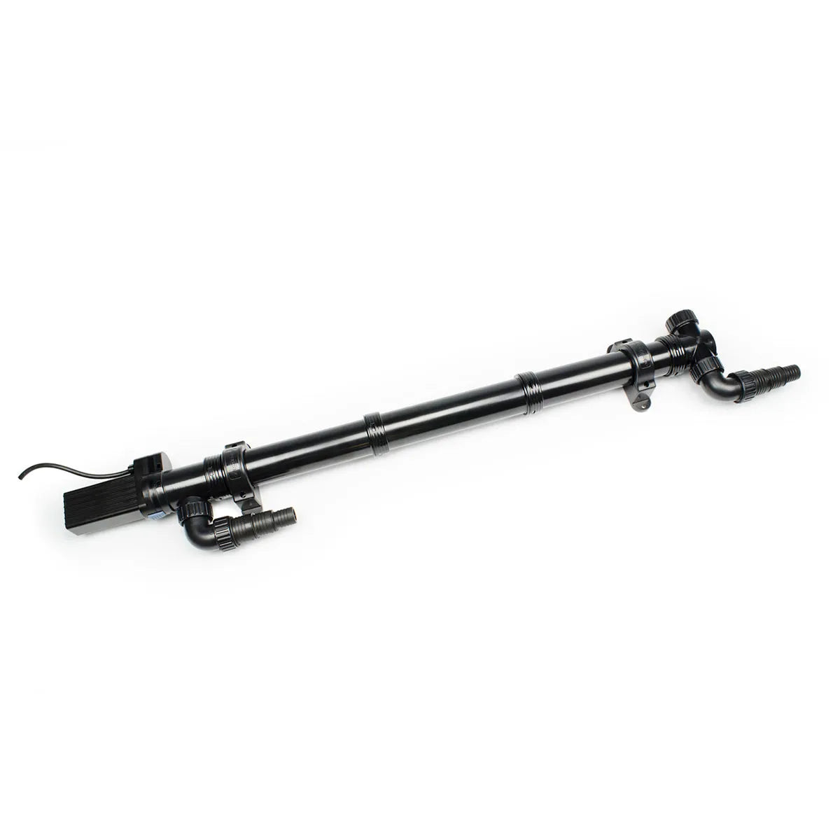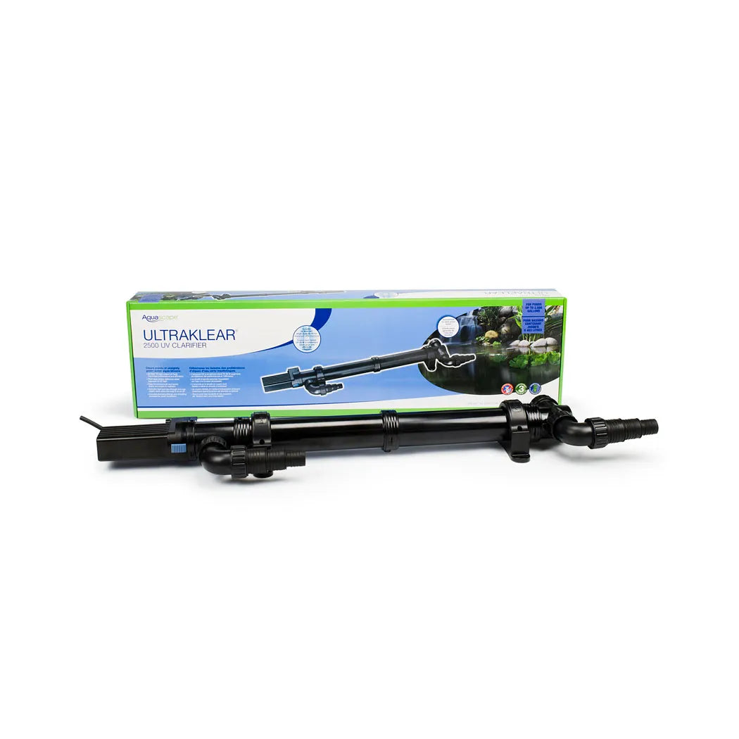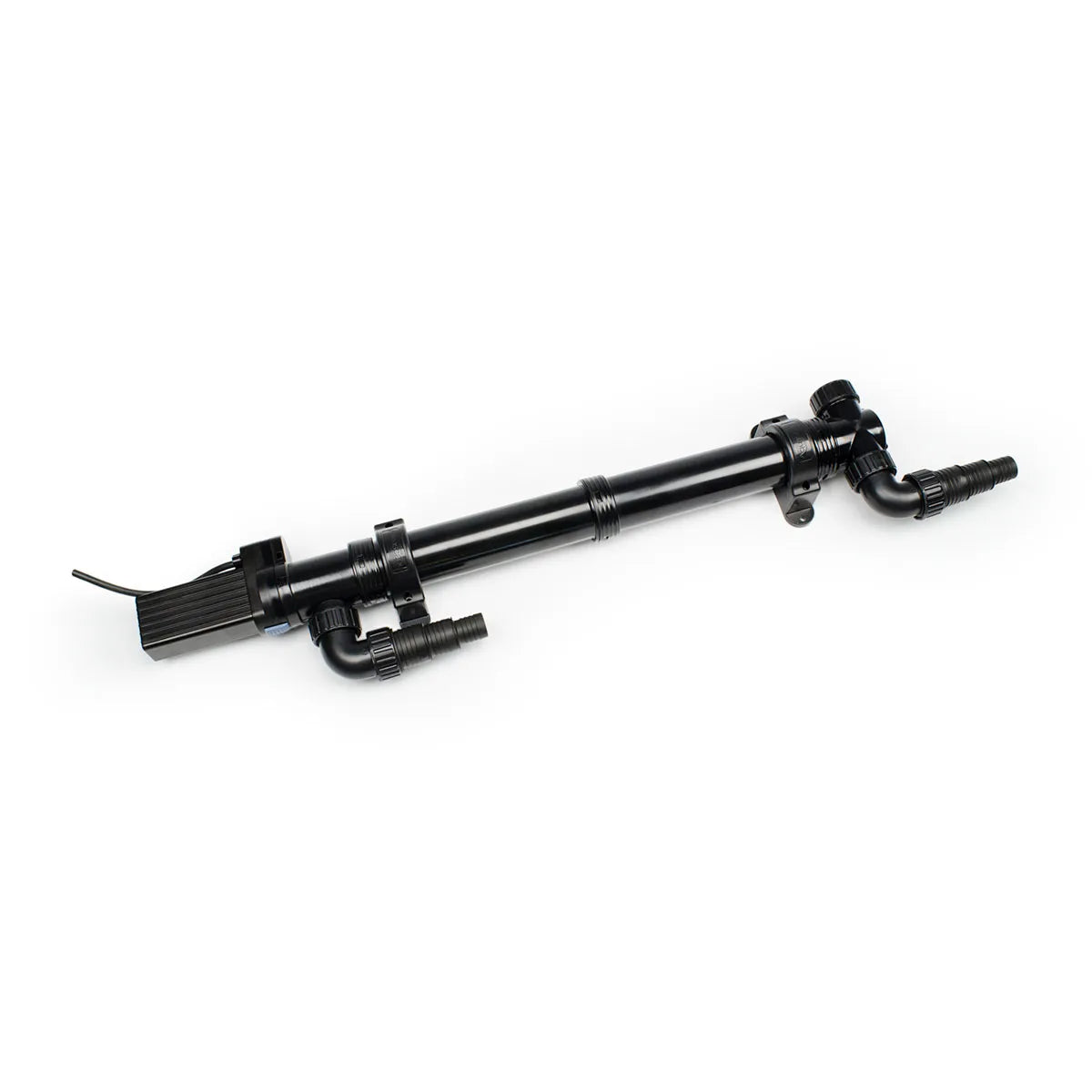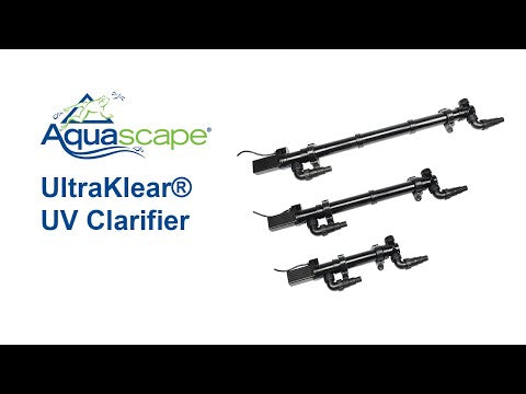 The Aquascape UltraKlear® UV Clarifier effectively clears unsightly green water algae blooms. Its technologically-advanced UV bulb maximizes the performance of the clarifier, while the narrow contact chamber increases its effectiveness significantly. The UltraKlear® internal swirl sleeve optimizes UV clarification by increasing the contact time between the algae and the UV bulb, increasing UV efficiency by up to 50% over traditional UV clarifiers. An on/off indicator provides quick verification of bulb functionality and the electronic ballast ensures optimum wattage and bulb output. The mechanical safety switch automatically turns the bulb off when the ballast is removed. Using the included mounting brackets, the UltraKlear® UV Clarifier is able to be mounted either vertically or horizontally, and the easy-to-remove bulb and quartz sleeve make maintenance simple. Each UltraKlear® UV Clarifier carries a 3-year limited warranty.